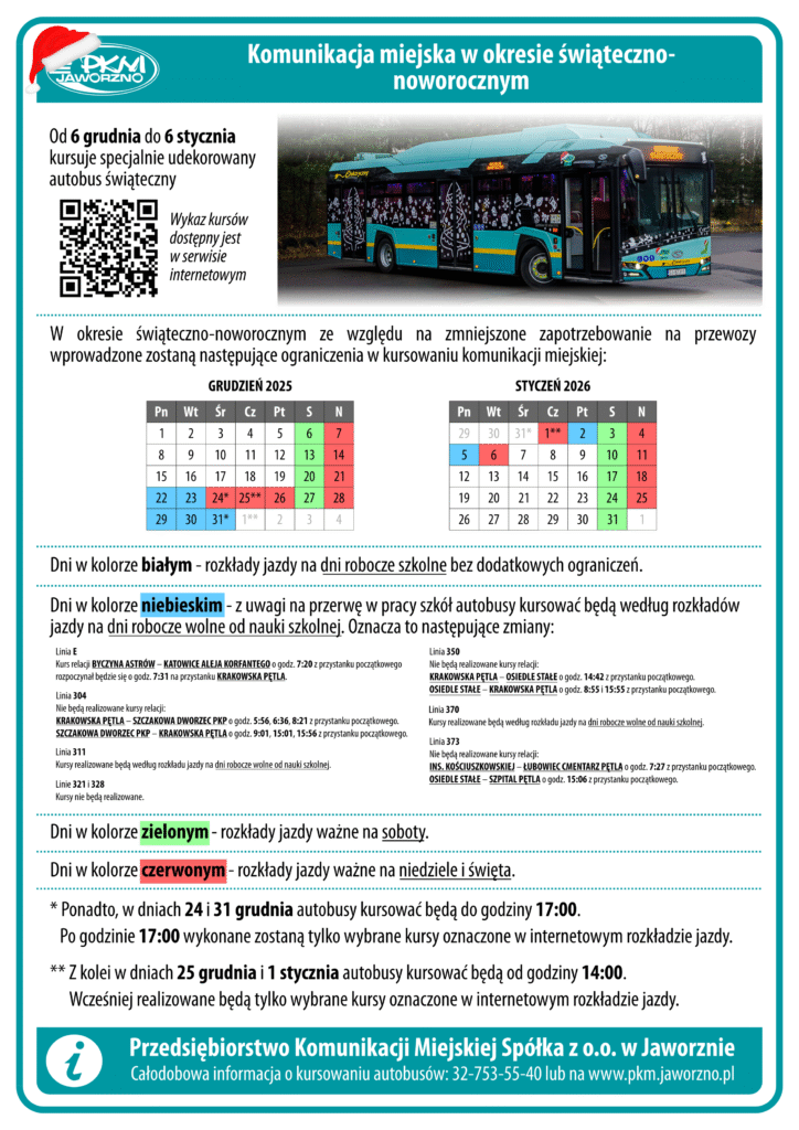 Komunikacja miejska w okresie świąteczno-noworocznym