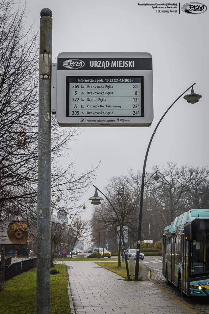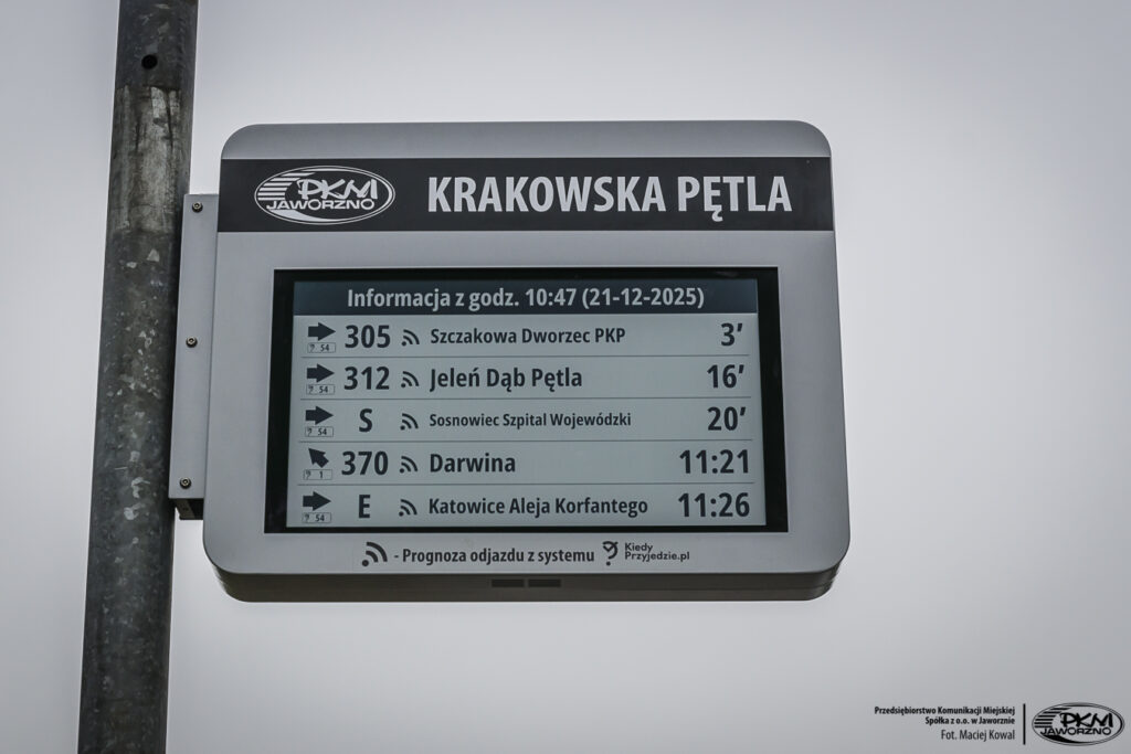 Przypominamy, że informacja o rzeczywistym czasie przyjazdu autobusu z dowolnego przystanku (także z tych nie wyposażonych w tablice) dostępna jest w aplikacji KiedyPrzyjedzie.pl lub na stronie: jaworzno.kiedyprzyjedzie.pl